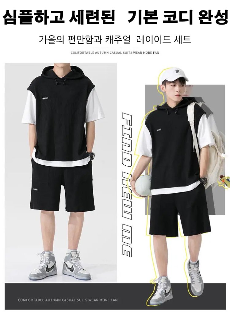 시원한 남자 레이어드 와플 패턴 캐주얼 세트